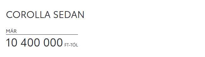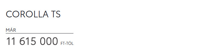 3 A szolgáltatást a Toyota Mobility Services Hungary Kft. (Szolgáltató) nyújtja. A kalkuláció tájékoztató jellegű, a felek között nem keletkeztet szerződéses jogviszonyt, és a kalkuláció készítésének időpontjában ismert költségeken alapul. A költségek változása esetén a Szolgáltató jogosult az ajánlat adatainak módosítására. Így különösen, de nem kizárólag jogosult a bérleti díjak megváltoztatására, amennyiben az ajánlatban figyelembe vett gépjárművek listára megváltozik, vagy amennyiben a refinanszírozási kamatlábak, illetve az adók megváltoznak. A kiemelt ajánlatok a legkésőbb 2025.12.31-vel bezárólag a Szolgáltatóval megkötött Egyedi Bérleti Szerződés esetén, avagy a Szolgáltató általi visszavonásig érvényesek. A Márkakerekedésben elkészített ajánlat az azon ajánlat elkészítésének időpontjában ismert feltételeknek megfelelően módosulhat. Jelen kalkuláció elkészítésének dátuma: 2025.07.14.