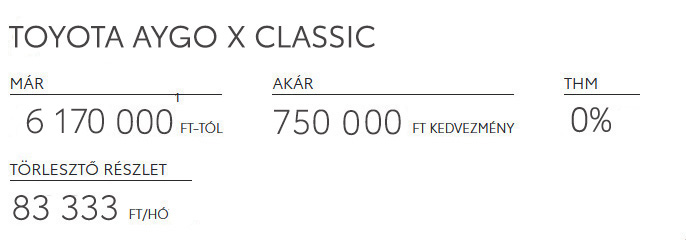 | Toyota 0% THM ajánlat: | |