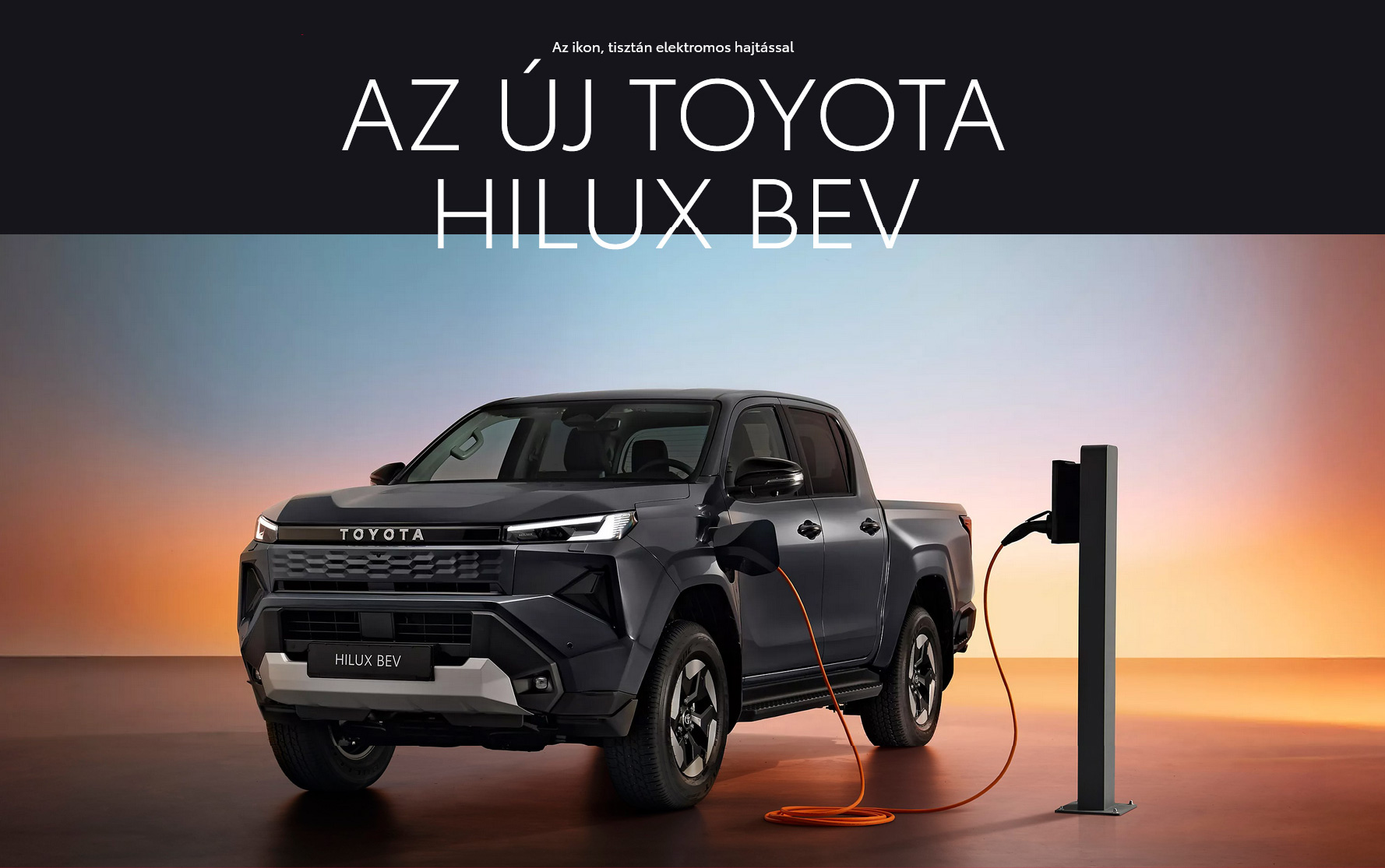 A keménységéről és praktikumáról híres Toyota Hilux folyamatosan fejlődik, új technológiákat integrálva, hogy a lehetetlen is lehetségessé váljon. A kifinomult, hatékony és erőteljes, tisztán elektromos új Hilux BEV állandó összkerékhajtással és megállíthatatlan terepképességekkel bír. Tapasztalja meg a Toyota időtálló tartósságát a fejlett, tisztán elektromos hajtással.